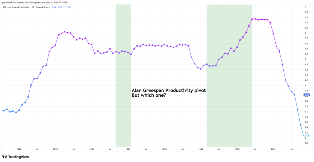 A lot of people are talking about the historical parallel here. Warsh is positioning his entire economic philosophy around the “AI Productivity Bet”. It is a direct echo of Alan Greenspan’s 1996 productivity pivot.