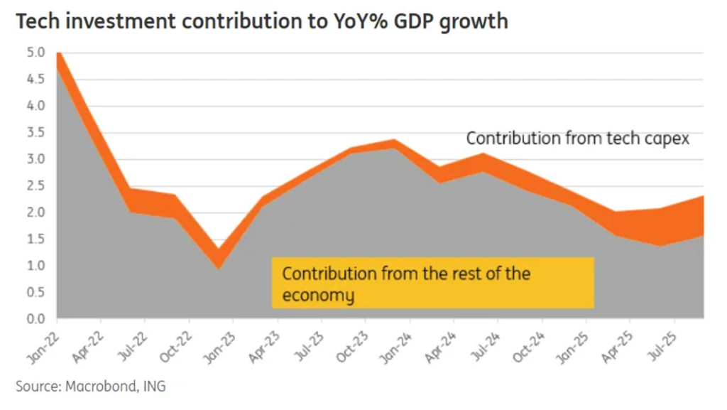 B) The AI Bubble Burst This is the more likely path to a market-led downturn. I don’t buy the argument that AI capex is the only thing keeping the U.S. out of recession , but the stock market is absolutely addicted to it. If NVIDIA gets hit in 2026, the ripple effect will be unavoidable. Falling prices crush confidence and freeze hiring.