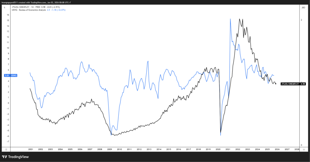 Starting from full employment, this gap would trigger acute worker shortages similar to the post-COVID era. This would drive the V/U ratio (vacancies per unemployed worker) sharply higher, serving as a leading indicator for aggressive wage growth.