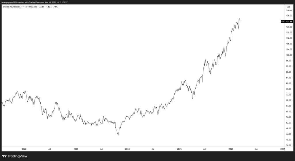 Think about that for a moment. Israel — the country in the middle of this war, the one absorbing Iranian counterstrikes — is trading as if none of this is an existential crisis.