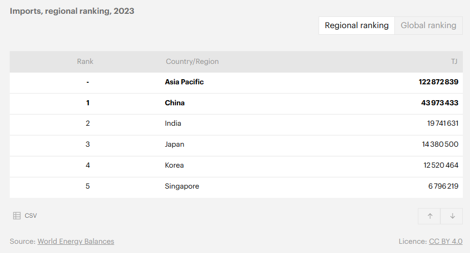 China is not the biggest victim — despite what the headlines suggest. Between 2016 and early 2024, China’s total observed aboveground crude oil inventory has ranged from 850 million to a bit over 1 billion barrels. Total inventories were estimated at between 1.1 billion and 1.2 billion barrels – equivalent to around over three months of imports.