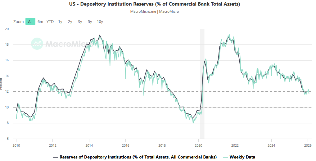 Dự báo hiện tại của FOMC cho thấy lãi suất sẽ duy trì trên 3,25% đến hết năm 2026. Điều này hoàn toàn khác xa mức 1% mà Trump mong muốn. Mong muốn thu hẹp vai trò của Fed của Warsh xung đột trực tiếp và không thể dung hòa với hành vi thực tế của hệ thống ngân hàng. Sự chuyển dịch sang các khoản nợ có thể rút ngay (demandable liabilities) không phải là một lựa chọn chính sách — mà là một cơn nghiện.